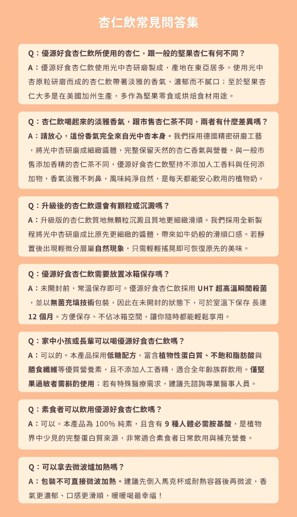 品名:<優源好食>原味杏仁奶200ml 優質植物蛋白質 植物奶的新選擇