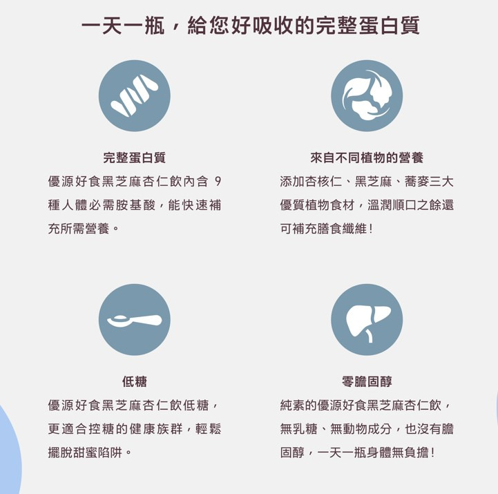 品名:<優源好食>黑芝麻杏仁飲200ml 優質植物蛋白質 植物奶的新選擇