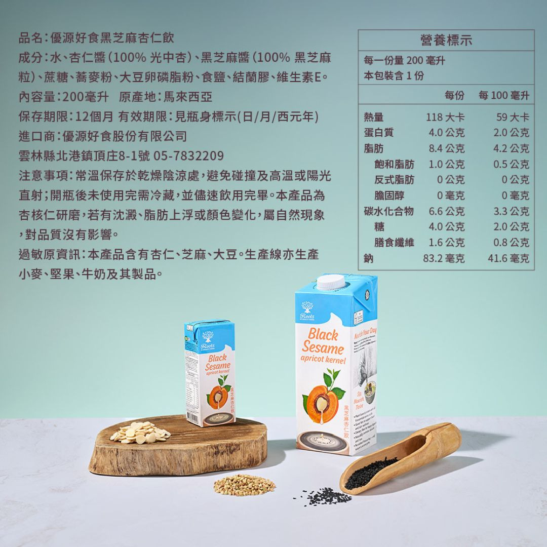 品名:<優源好食>黑芝麻杏仁飲200ml 優質植物蛋白質 植物奶的新選擇