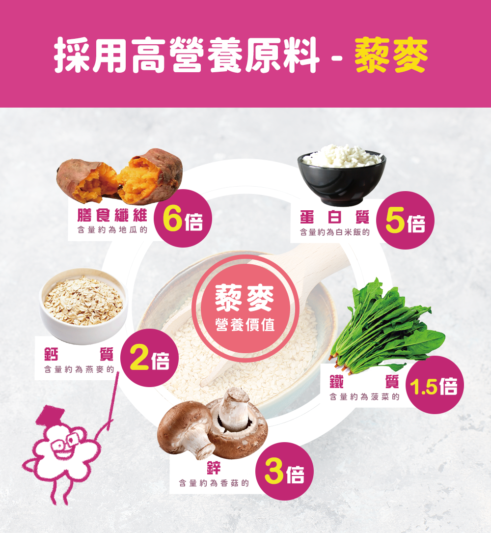 成分:進口玉米粒(非基改)、棕櫚油、葡萄糖、砂糖、海藻糖、紅黎麥粉