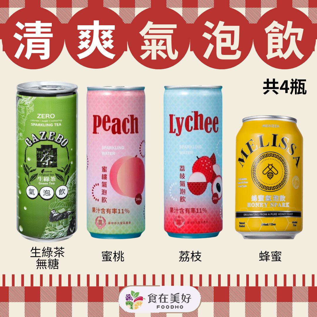 蜜桃 & 荔枝氣泡飲: 11%果汁含量,台灣在地水果,果香清甜好爽口。