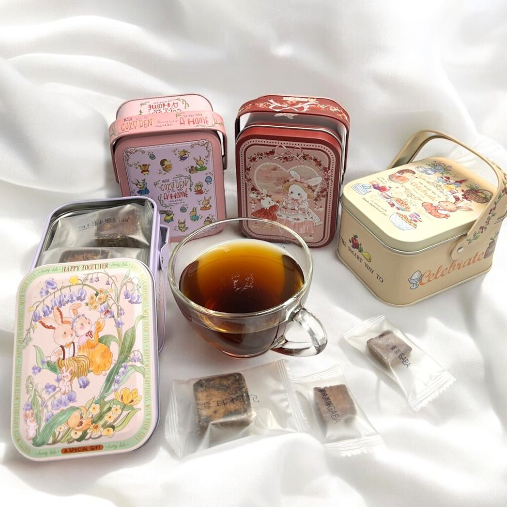 總共有6款黑糖鐵盒,鐵盒樣式不指定,依現貨鐵盒為主,若有偏好的鐡盒款可先聊聊詢問