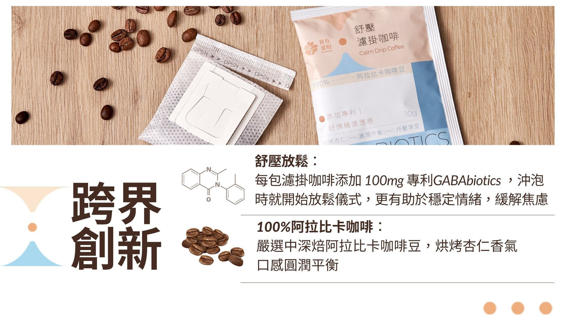「食在美好」攜手咖啡師與生技專家,創新開發出兼具美味與保健富含GABA的濾掛咖啡。