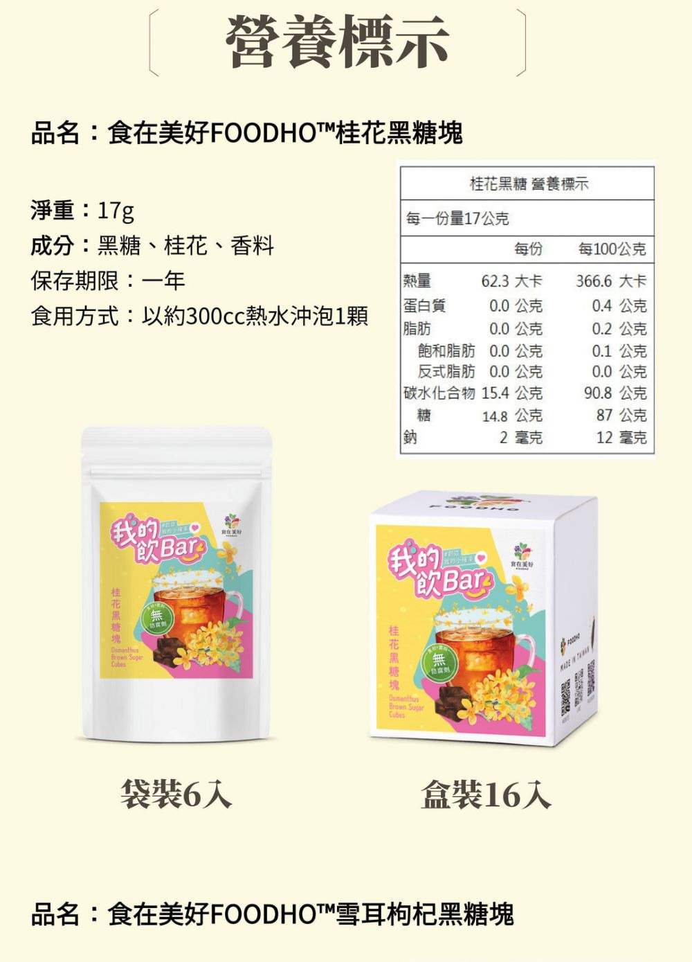 品名:食在美好FOODHO™雪耳枸杞黑糖塊2入