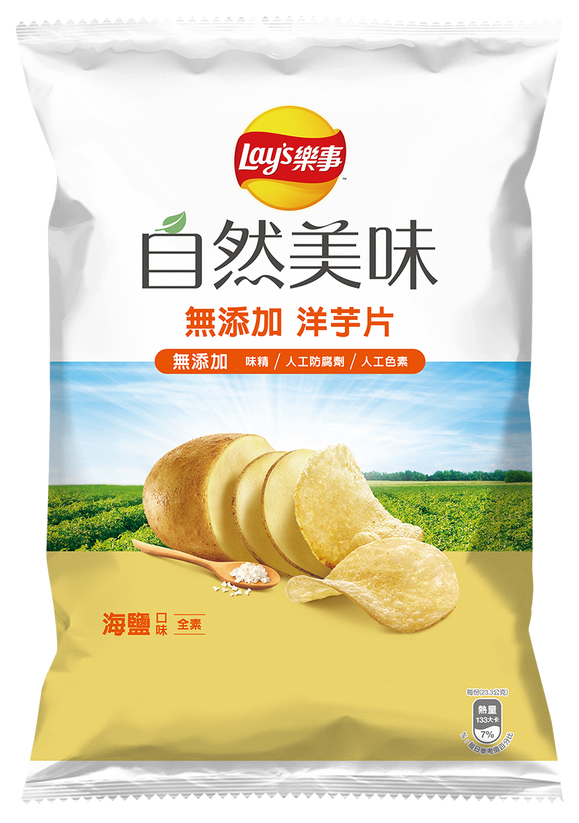 樂事新商品_自然美味系列 海鹽口味洋芋片70g品名:樂事自然美味海鹽口味洋芋片原料:馬鈴薯、棕櫚油、食鹽︱真實的美好滋味︱簡單調味,不膩不死鹹口感更清爽讓人忍不住多吃幾口︱海鹽口味︱選用新鮮馬鈴薯,僅用簡單海鹽提味,不膩、不死鹹。薯香加上清爽薄脆口感,每口都能吃到真實的美好滋味!